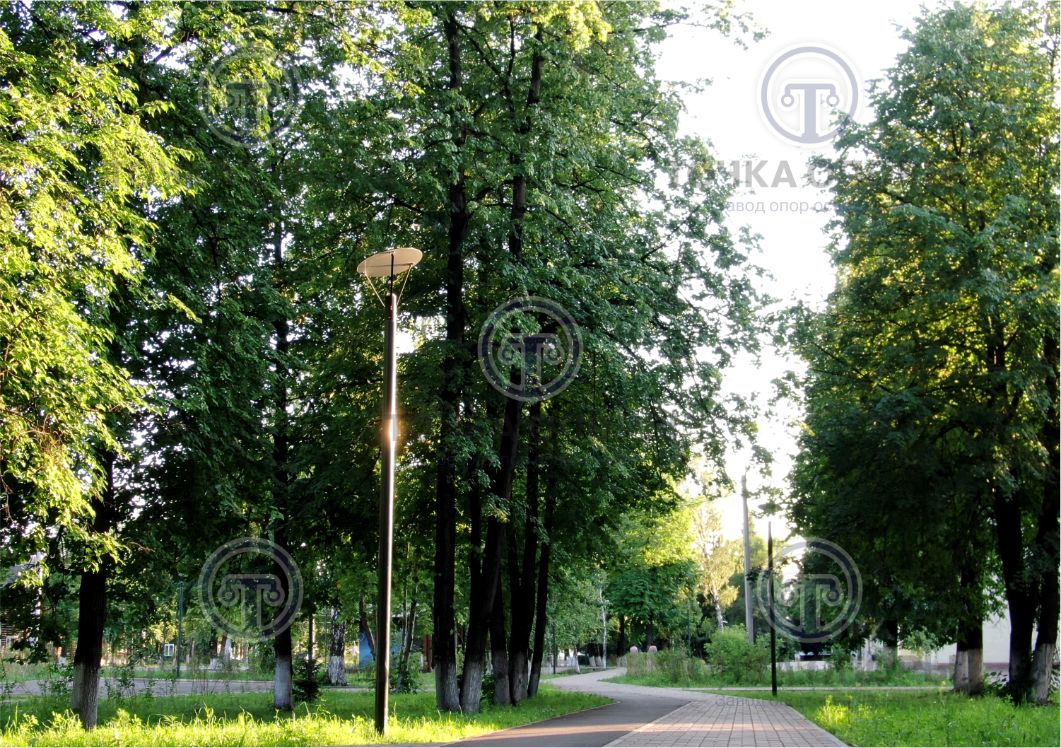 Такой светильник обеспечивает мягкое равномерное свечение. Устанавливается на стальную фланцевую опору освещения, выполненную из трубного проката и покрытую порошковой краской.